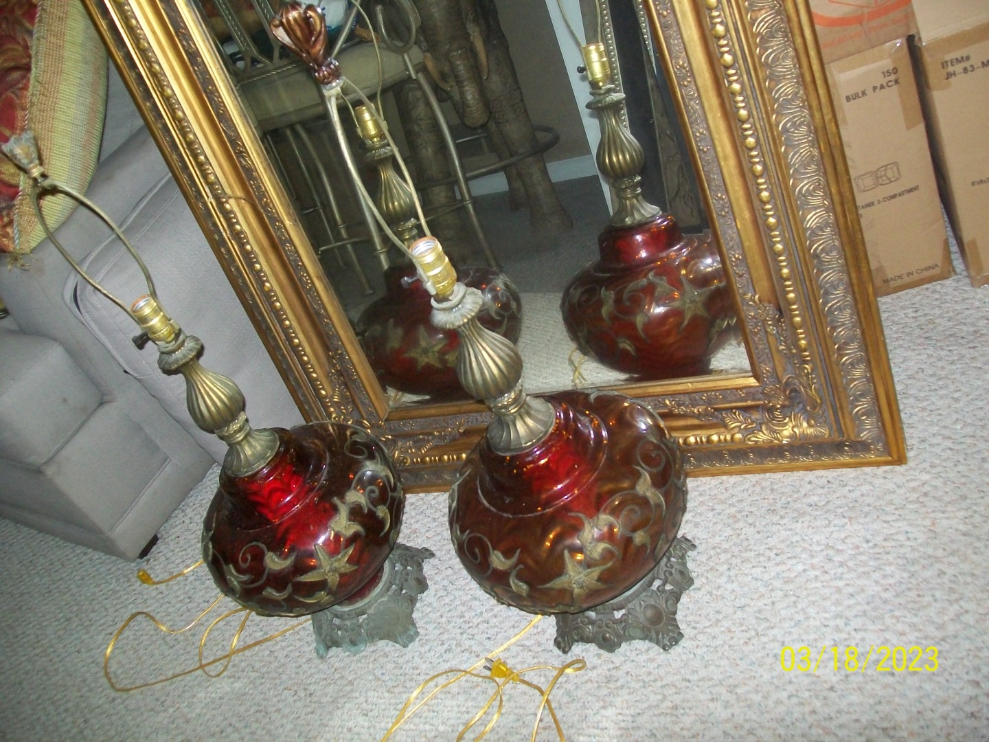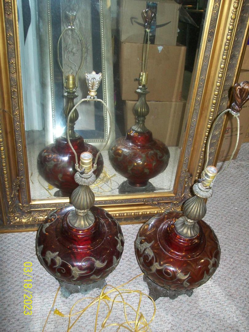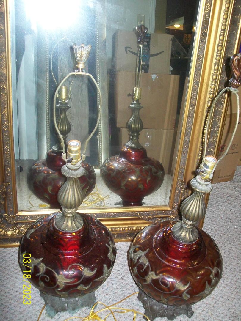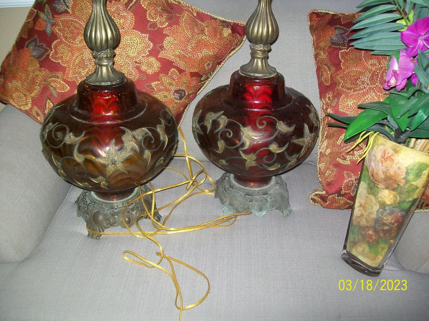 2 Falkenstein #6180 Vintage Hollywood Regency Ruby Red Mid Century Modern Lamps $1111(404)207-9648