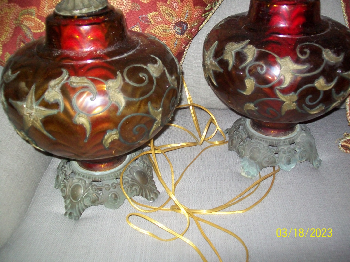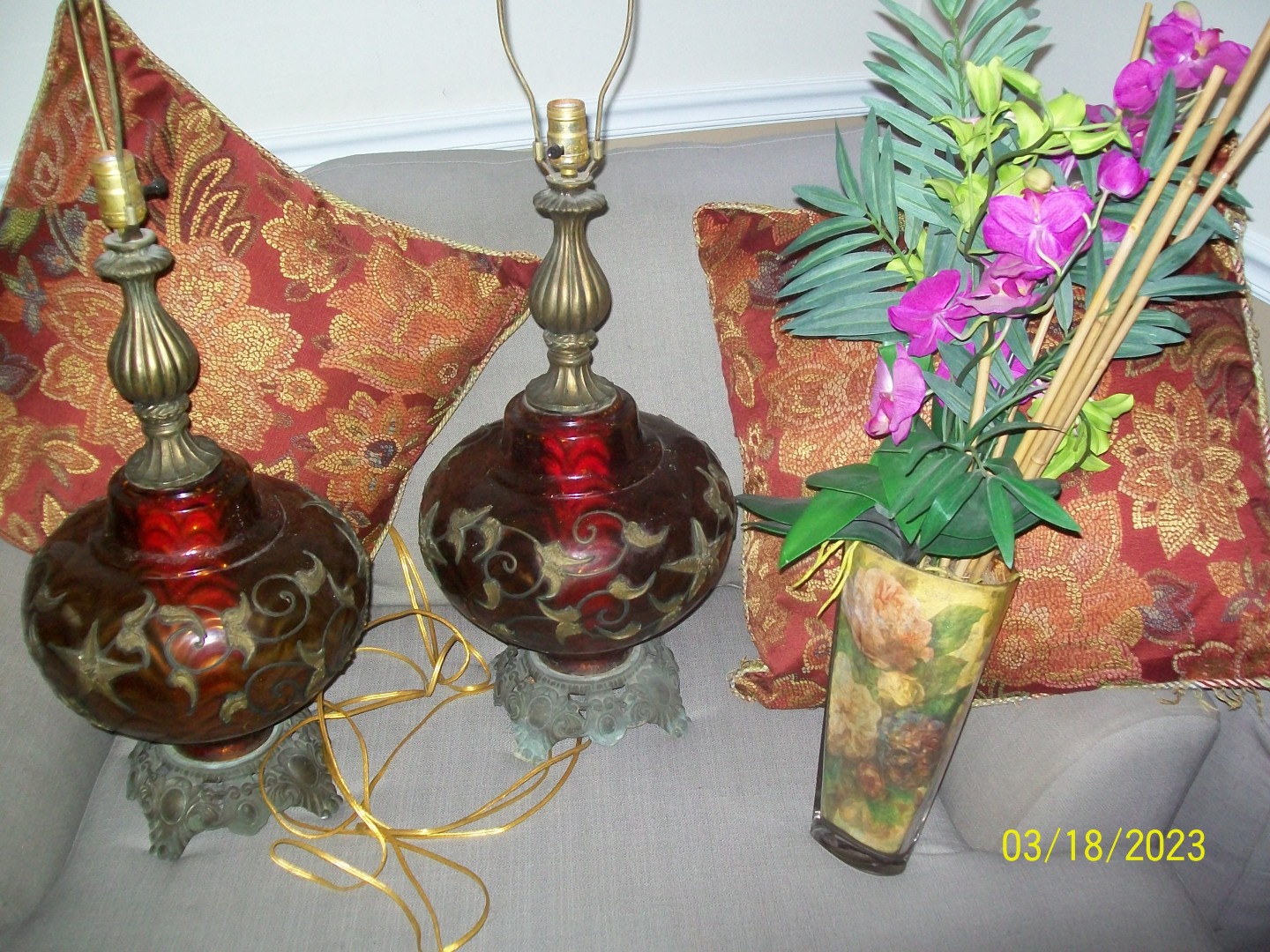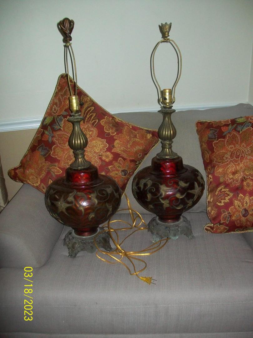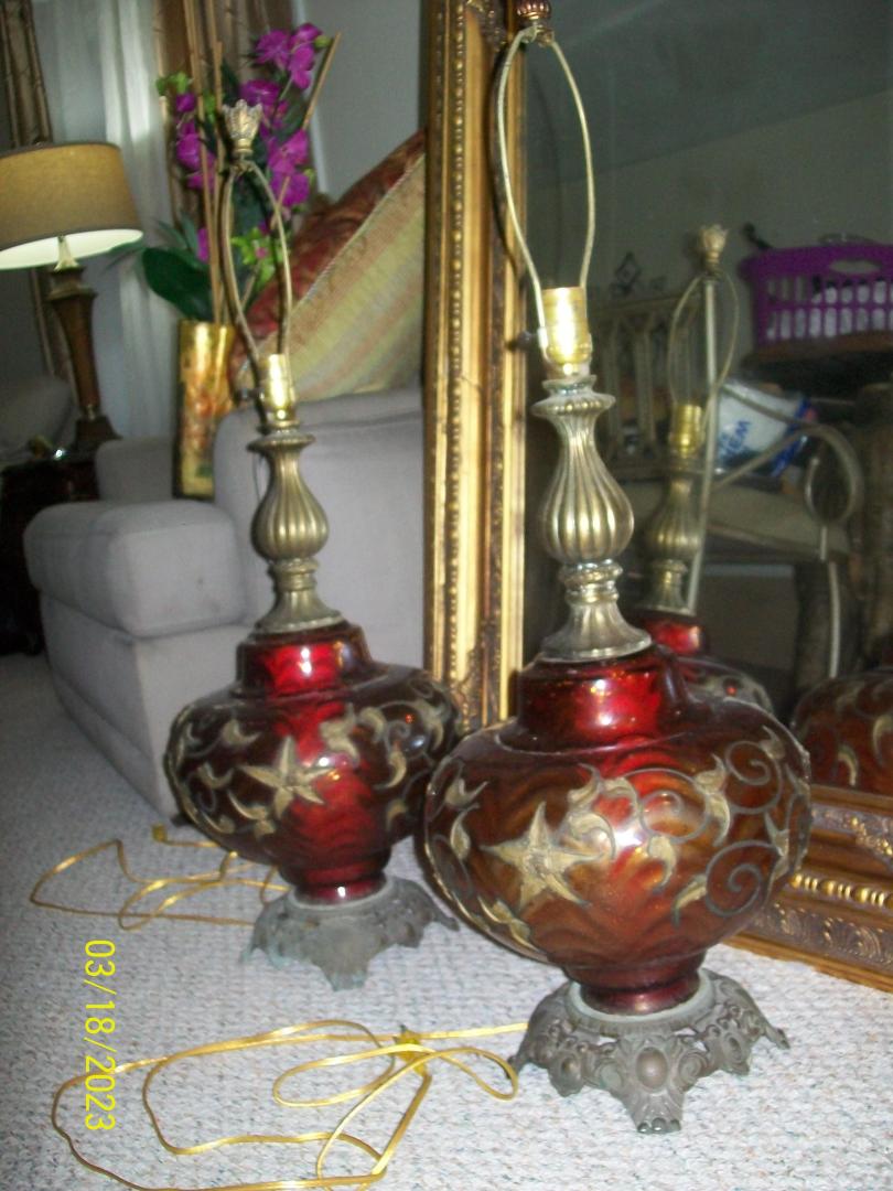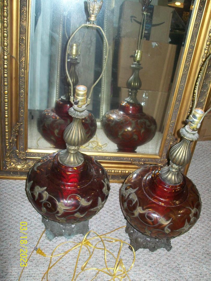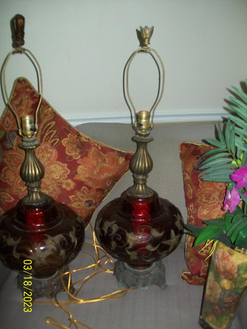 2 Falkenstein #6180 Vintage Hollywood Regency Ruby Red Glass/Brass MCM Lamps call (404)207-9648